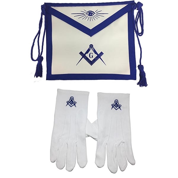 Master Mason Apron & Glove Gift Set includes one Master Mason embroidered lamtex apron with cord and tassels attached to the waist and one set of Master Mason gloves (one size fits most) with embroidered emblems. Save 10% when purchased as a set.